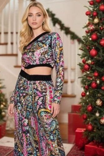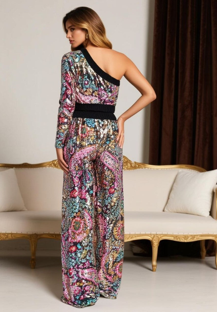 ГОРНИЦА ОТ КАДИФЕ НА ЦВЕТНИ ПАЙЕТИ С ЕДНО РАМО