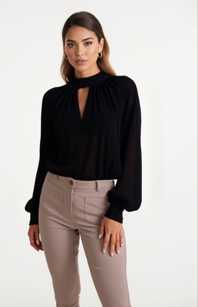 Blusa elegante in rete nera.